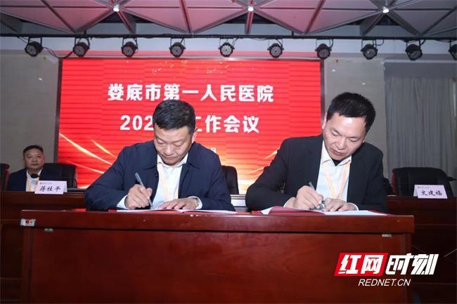 党委副书记、院长胡飞跃代表行政,党委委员、工会主席康大尉代表全体职工签订《娄底市第一人民医院2026年集体合同》。会议强调,2026年是“十五五”发展规划的开局之年,也是医院实现跨越式发展的关键一年。医院将继续以党建为引领,强化班子建设与党风廉政建设,筑牢发展根基;持续深化质量管理体系建设,严守医疗质量底线,全方位筑牢患者安全防线;以专科建设为抓手,聚焦优势专科做强做精、特色专科培优育新、薄弱专科补强提升,打造一批具有区域影响力的精品专科;以创新发展为驱动,积极引入前沿诊疗技术与理念,推动医疗服务能力与水平实现质的飞跃;秉持“以患者为中心”理念,不断优化服务流程,为患者提供更加优质、高效、安全的医疗服务。党委书记蒋桂平对医院2025年取得的工作成绩予以充分肯定,并立足当前、着眼长远,客观剖析了发展进程中存在的短板与不足,强调要坚持问题导向,精准识别薄弱环节,进一步明晰改进路径、找准发力方向。他寄语全院干部职工,要统一思想、凝聚共识,将会议擘画的蓝图转化为实际行动,制定详实可行的工作方案,以扎实举措确保2026年各项工作开好局、起好步,在提升医疗服务质量、强化学科及人才队伍建设、激发科研创新活力等重点领域持续深耕、久久为功,共同推动医院整体发展跃升新台阶、实现新跨越。此次会议的召开,不仅进一步明晰了医院2026年重点工作方向与核心任务,更凝聚了全院上下的发展共识、明确了奋进方向、压实了工作责任。与会人员纷纷表示,将以会议精神为指引,把思想和行动切实统一到医院决策部署上来,以更加饱满的热情、更加务实的作风,扎实推进各项工作,共同为医院高质量发展、健康娄底建设贡献新的更大力量。举报/反馈