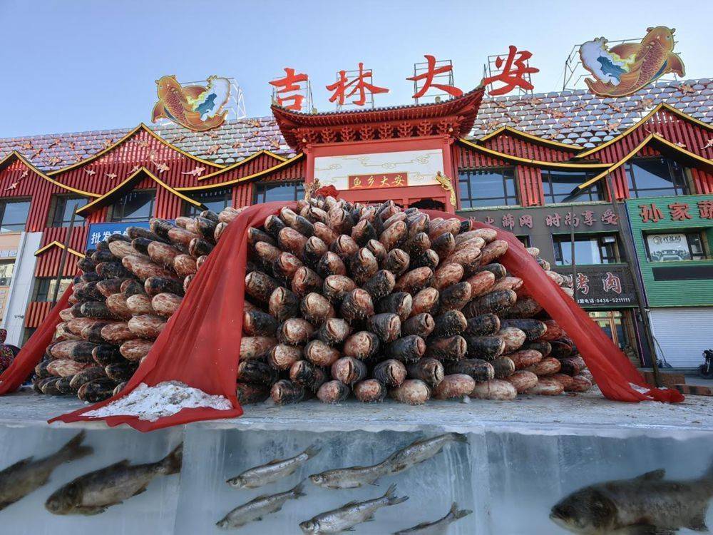 “冬捕+市集”激活水产品消费新引擎。大安水产品交易中心渔业大集同步开市,聚焦沉浸式渔猎文化体验+产业链科普+年货采购,现场设鲜鱼展示、分割、邮寄、酱料包配备等功能区域,提供一站式服务;头鱼拍卖现场更是热潮涌动,活动特别设置了月亮泡及玉龙湖冬捕双头鱼拍卖,既传承了渔猎文化,也打响大安渔产名气,实现文旅引流、水产增收、富民共赢。