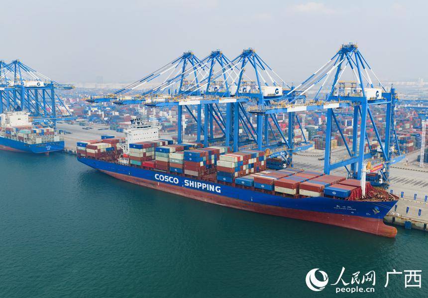 一艘满载集装箱的货轮正在北部湾港钦州自动化码头卸货。人民网记者 王勇摄人民网南宁1月6日电 (记者王勇)记者从国铁南宁局获悉,2025年西部陆海新通道班列发运集装箱货物142.5万标箱,同比增长47.6%,通道运量增长态势强劲,首次实现年发运量突破百万标箱,再创历史新高,构建起中国西部地区与东盟互联互通的物流大动脉,成为我国与沿线国家经贸合作,维护全球供应链稳定的国际贸易大通道。